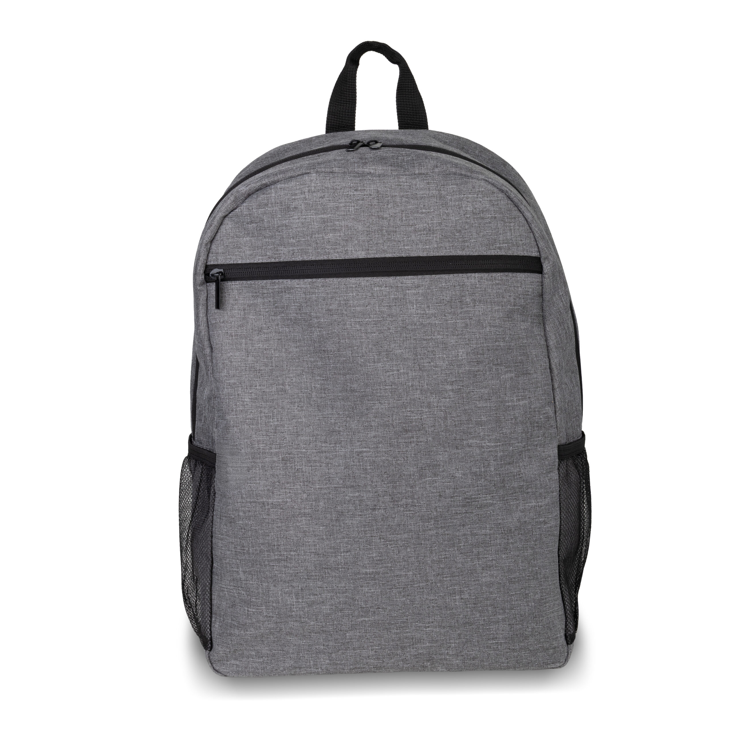 Mochila confeccionada em tecido externo de poliéster 300D e interno em poliéster 190D. Com bolso frontal com zíper, dois bolsos laterais e compartimento interno para notebook de até 15,6”.